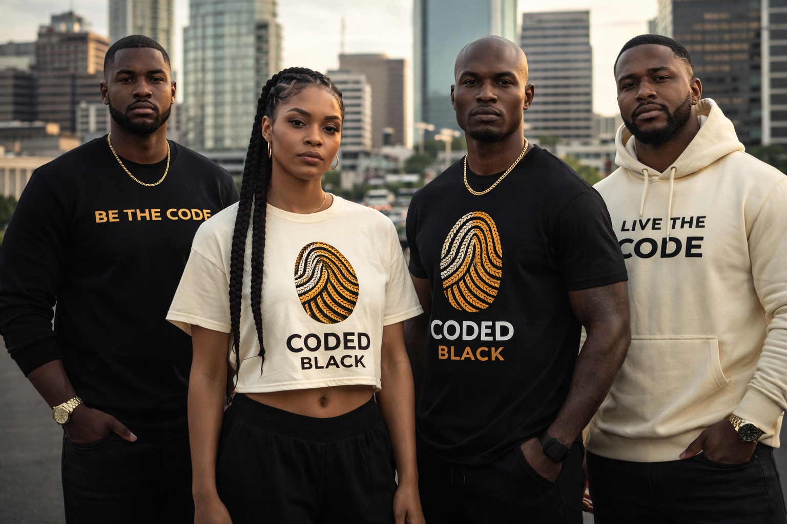 Coded Black. Heritage in the fabric. Built on lineage, self-mastery, and responsibility. This is identity worn with purpose. Be the Code.